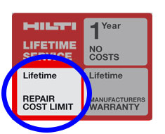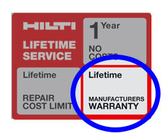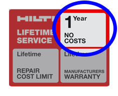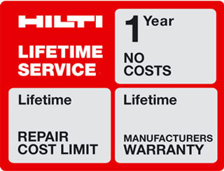 Hilti repairs or replaces, free of charge, all tools that suffer defects as a result of faults in material or manufacturing over the entire life of the product.